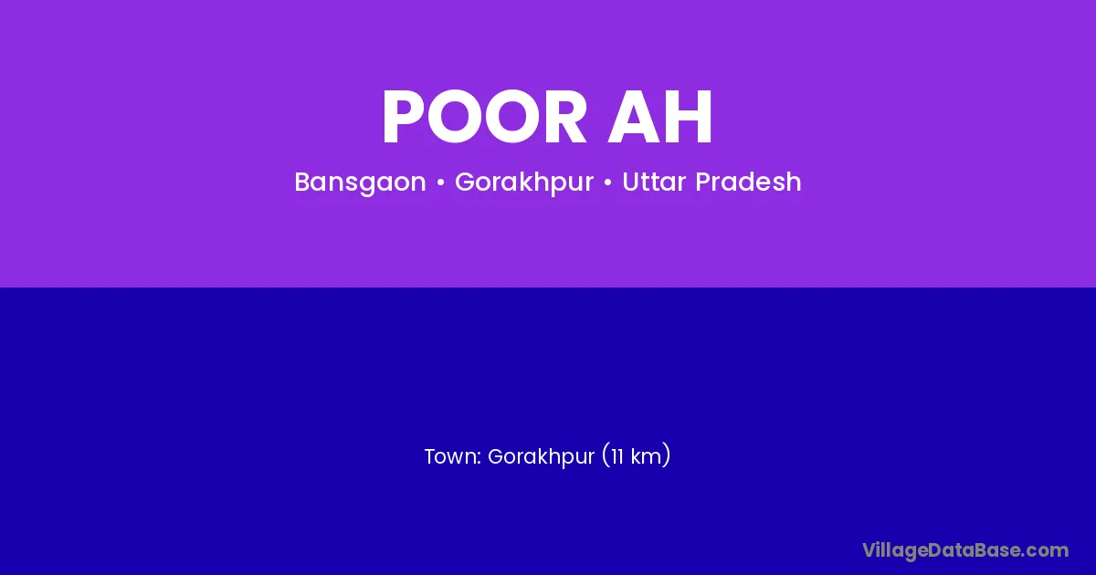 Gorakhpur (11 km) is the nearest town to Poor Ah village for major economic activities and is located approximately 11 km away.
