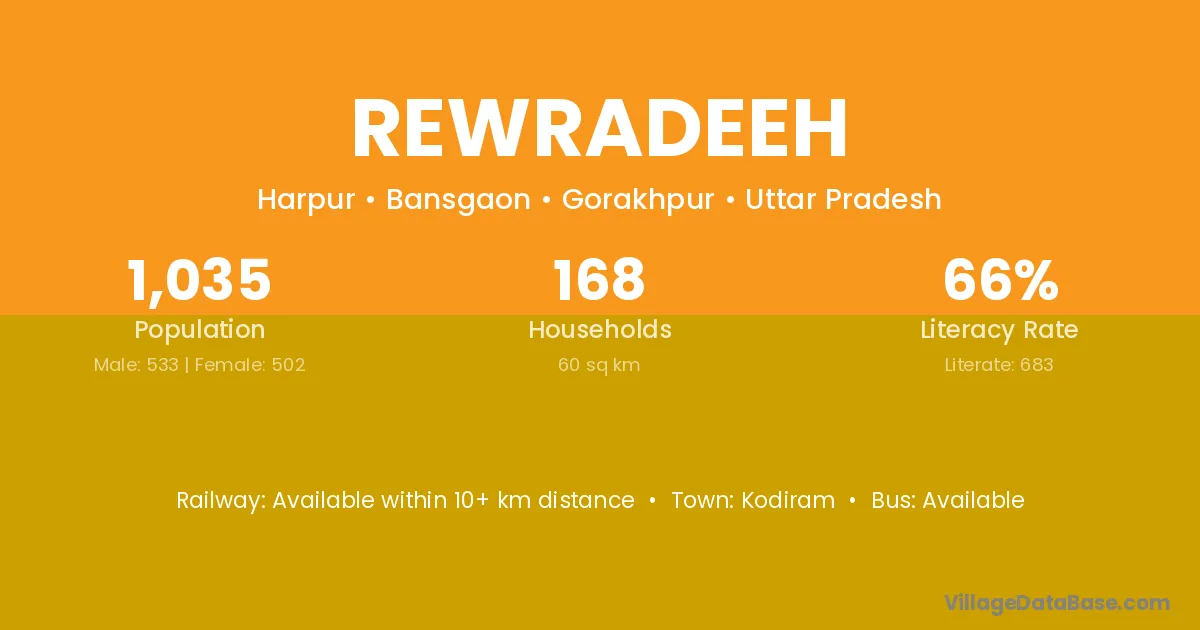 Rewradeeh village has a total population of 1,035 people, of which 533 are males and 502 are females.
