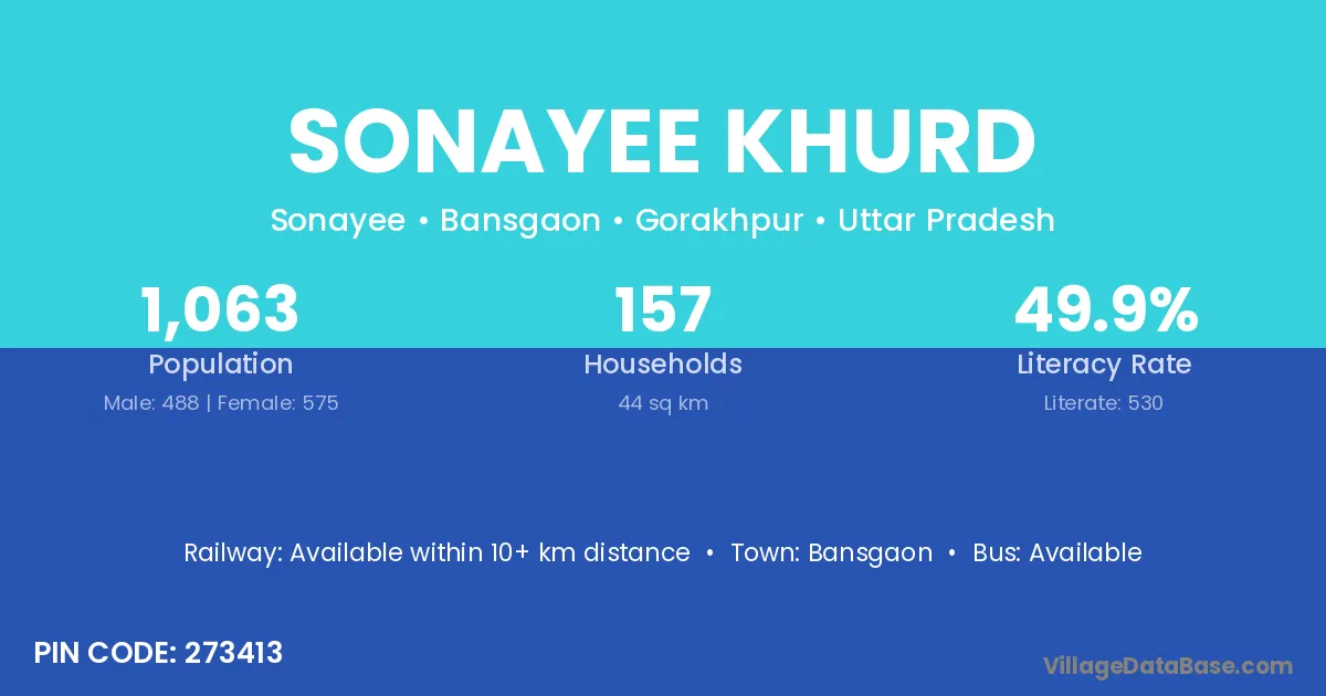 Sonayee Khurd village has a total population of 1,063 people, of which 488 are males and 575 are females.