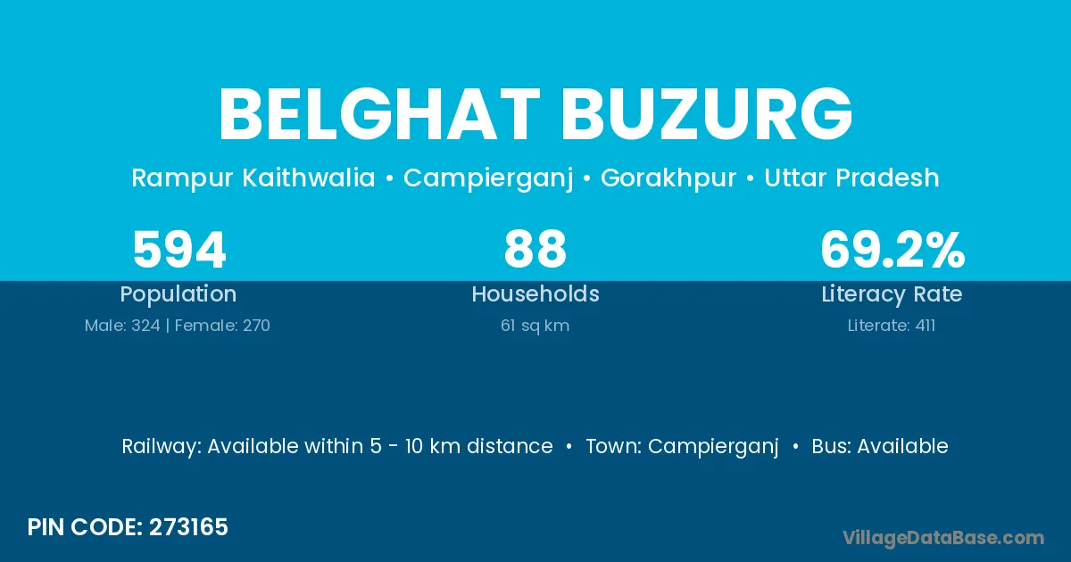 According to Census 2011 information, the village code of Belghat Buzurg village is 273165.