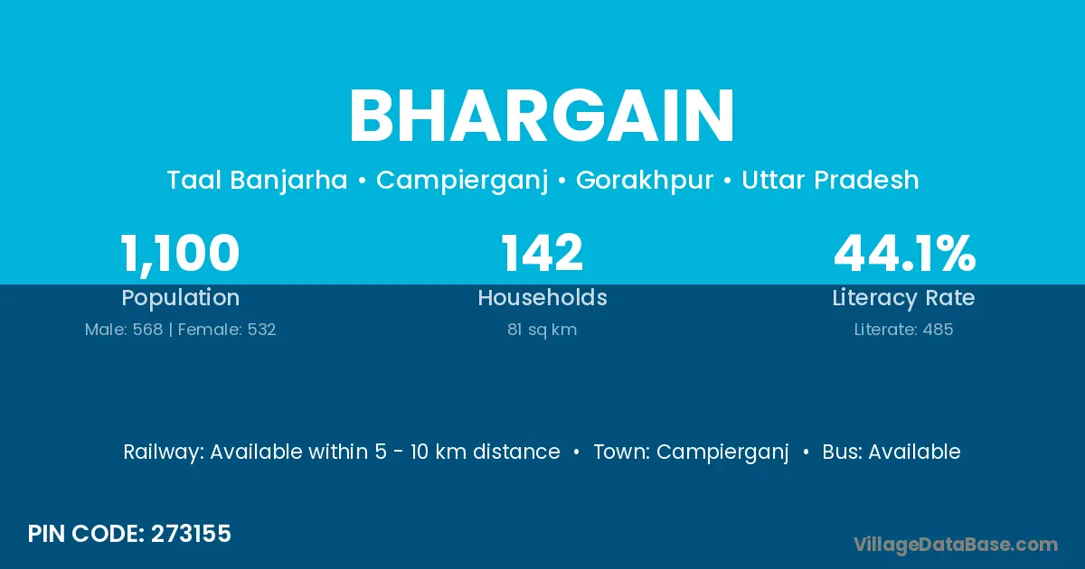 According to Census 2011 information, the village code of Bhargain village is 273155.