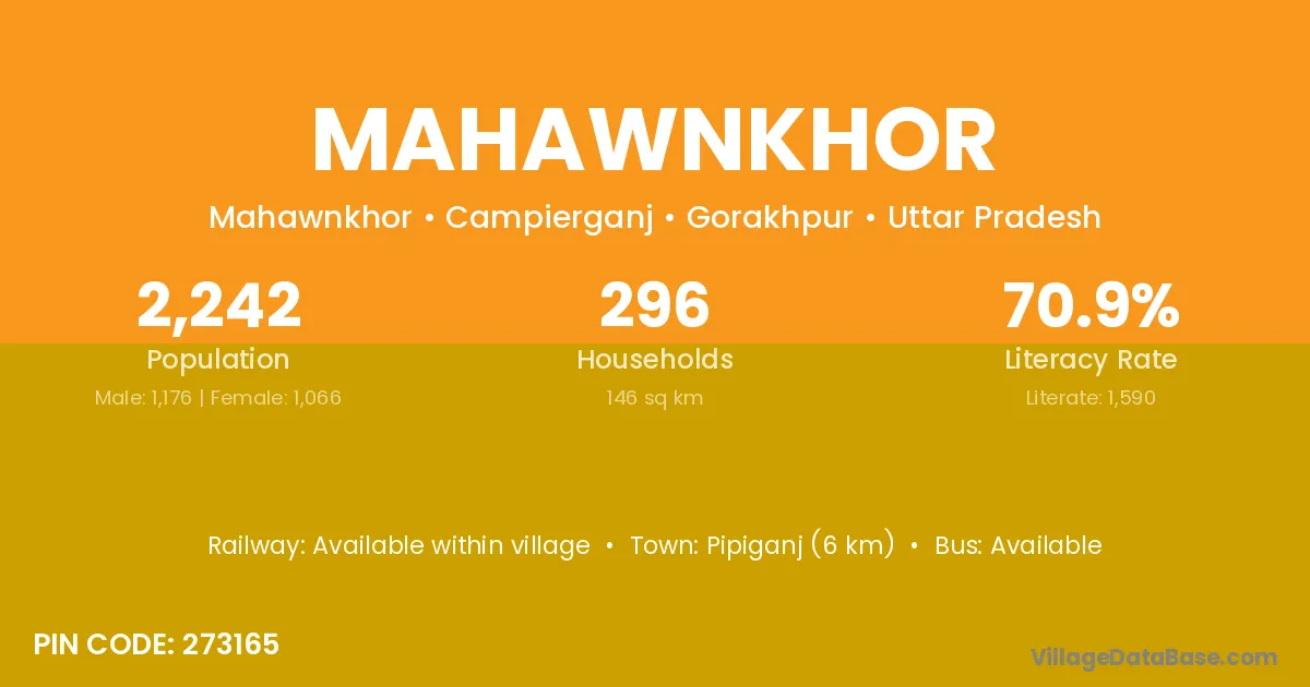 Pipiganj (6 km) is the nearest town to Mahawnkhor village for major economic activities and is located approximately 6 km away.