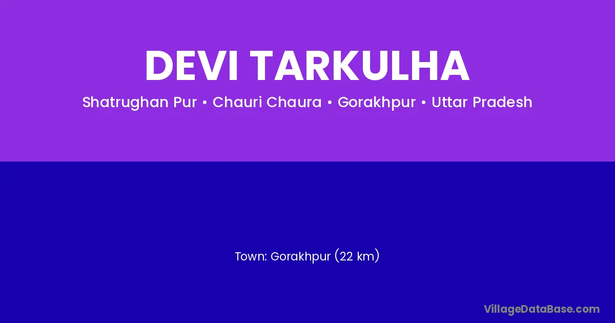 Gorakhpur (22 km) is the nearest town to Devi Tarkulha village for major economic activities and is located approximately 22 km away.