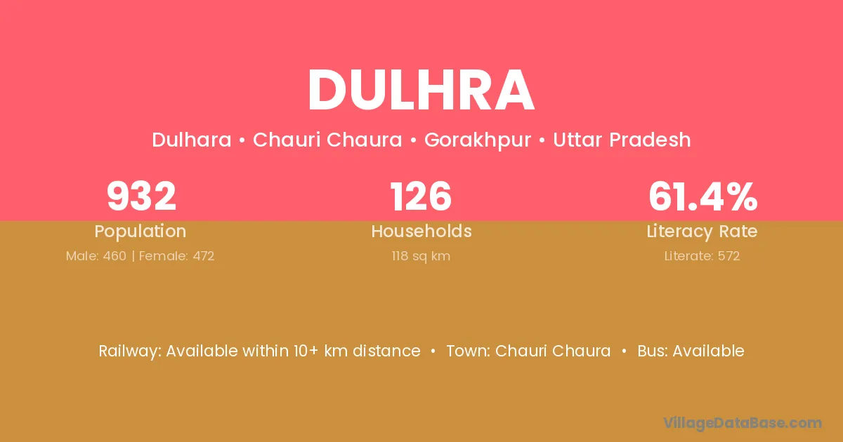 Chauri Chaura is the nearest town to Dulhra village for major economic activities