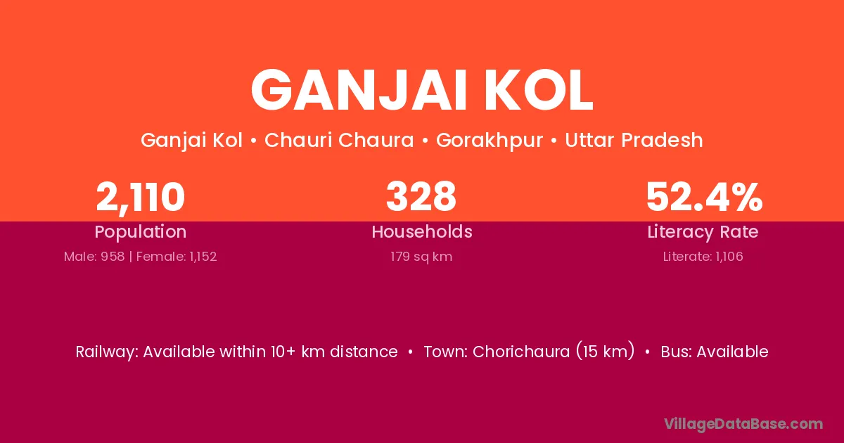 Ganjai Kol village has a total population of 2,110 people, of which 958 are males and 1,152 are females.