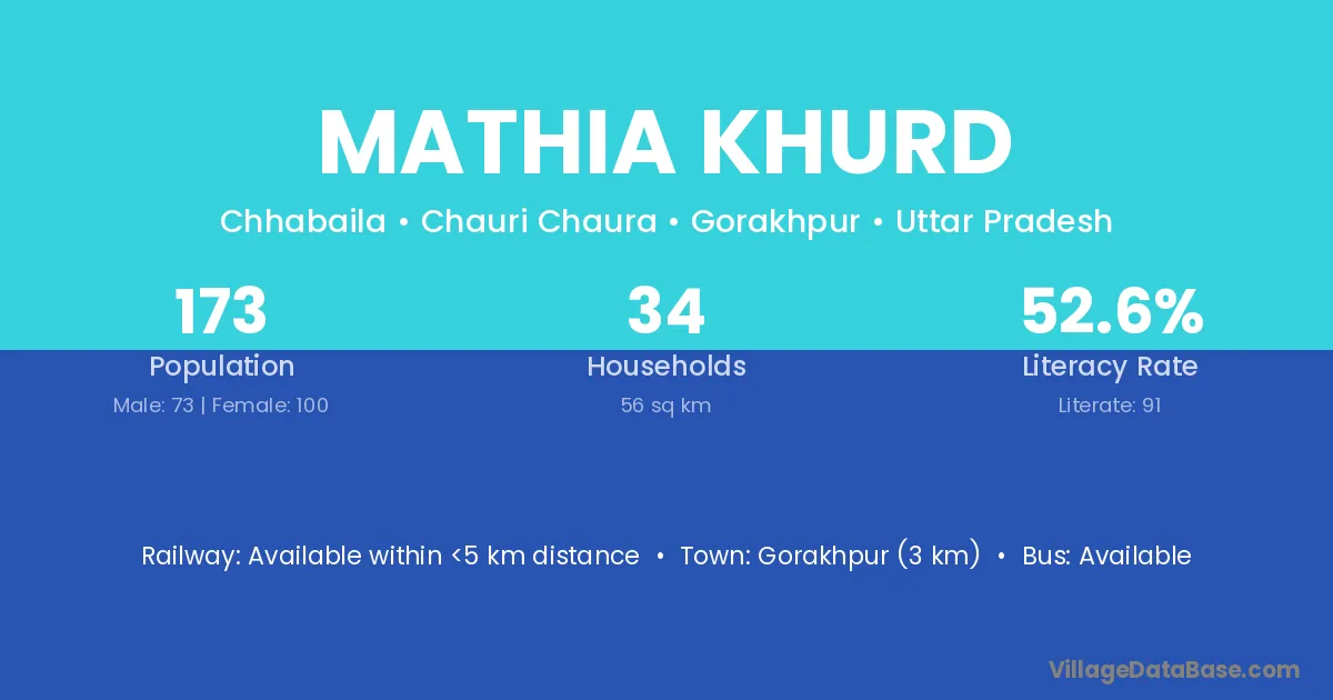 Gorakhpur (3 km) is the nearest town to Mathia Khurd village for major economic activities and is located approximately 3 km away.