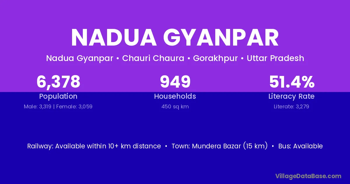 Nadua Gyanpar village has a total population of 6,378 people, of which 3,319 are males and 3,059 are females.