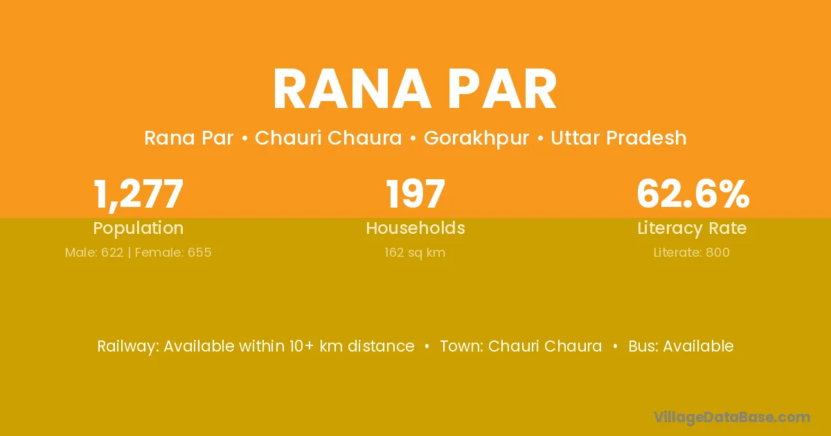 Rana Par village has a total population of 1,277 people, of which 622 are males and 655 are females.
