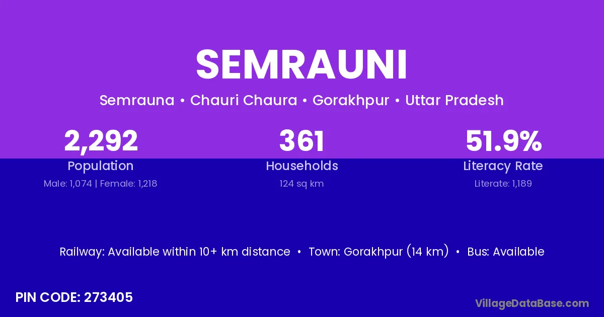 Gorakhpur (14 km) is the nearest town to Semrauni village for major economic activities and is located approximately 14 km away.