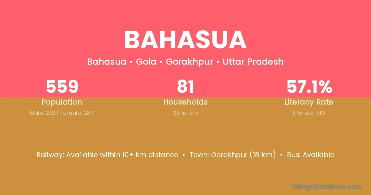 Gorakhpur (18 km) is the nearest town to Bahasua village for major economic activities and is located approximately 18 km away.