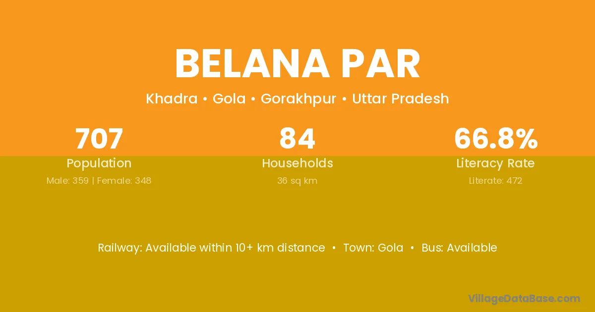 Belana Par village has a total population of 707 people, of which 359 are males and 348 are females.