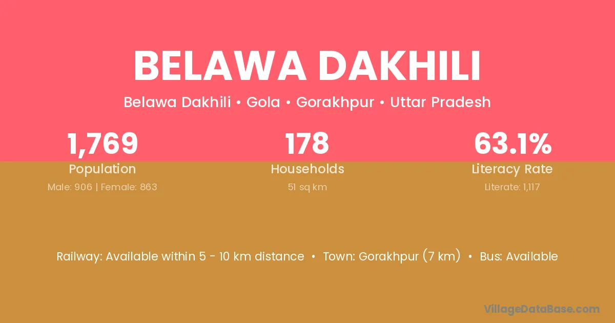 Gorakhpur (7 km) is the nearest town to Belawa Dakhili village for major economic activities and is located approximately 7 km away.