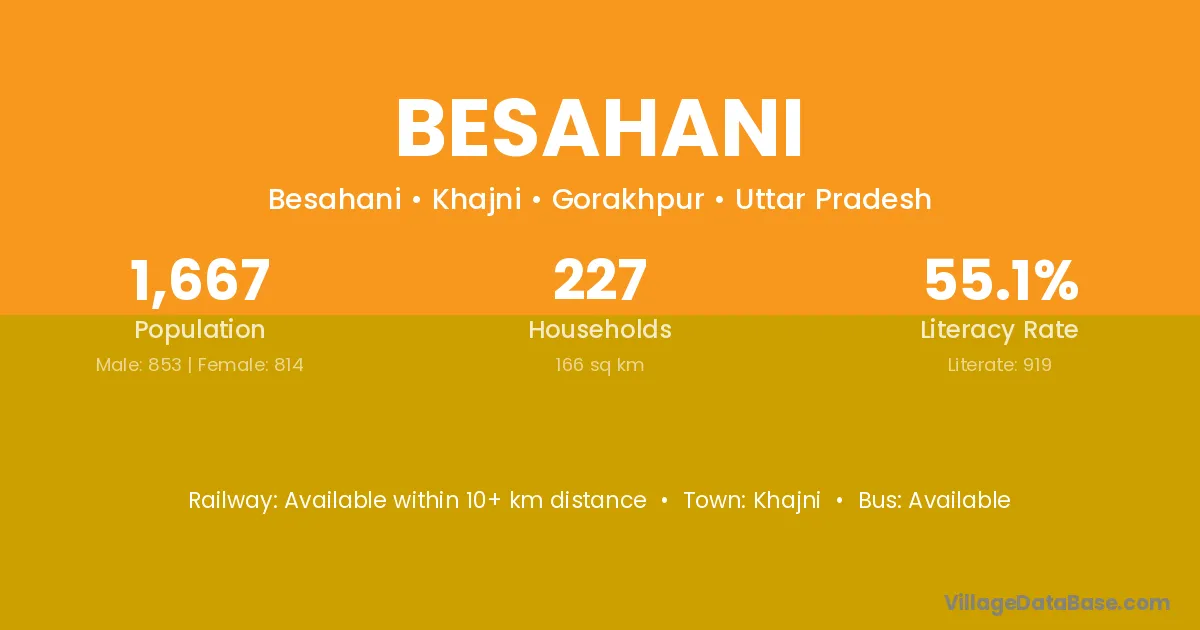 Gorakhpur (68 km) is the nearest town to Besahani village for major economic activities and is located approximately 68 km away.