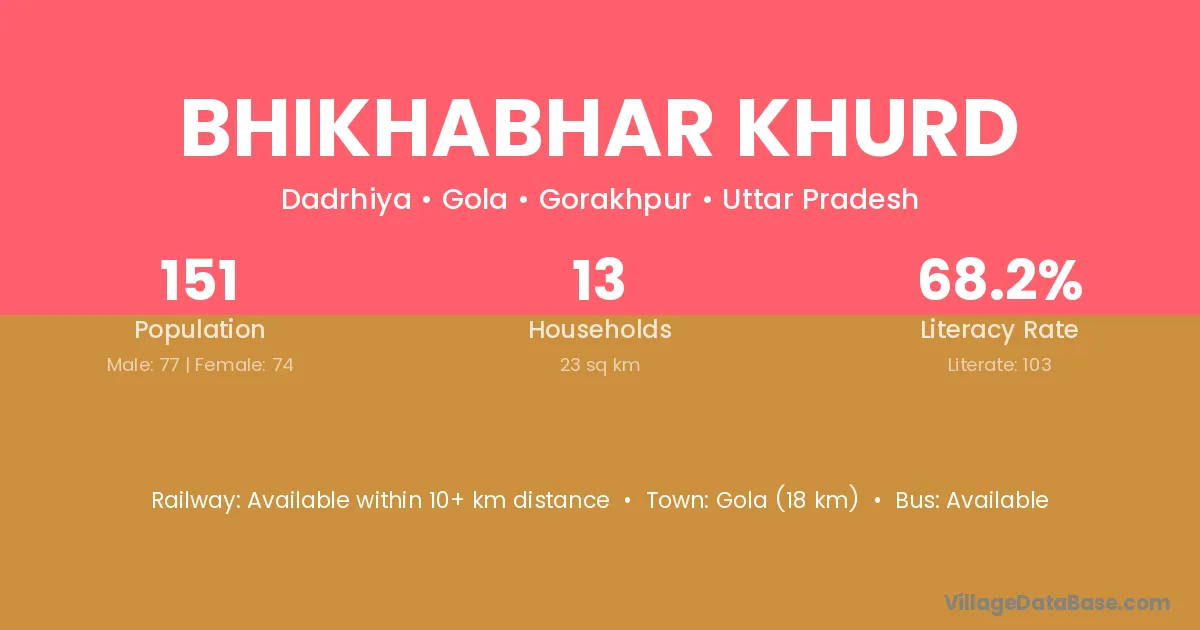 Gola (18 km) is the nearest town to Bhikhabhar Khurd village for major economic activities and is located approximately 18 km away.