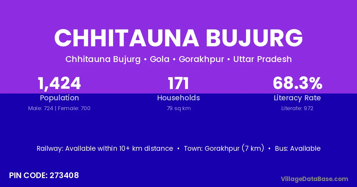 Gorakhpur (7 km) is the nearest town to Chhitauna Bujurg village for major economic activities and is located approximately 7 km away.