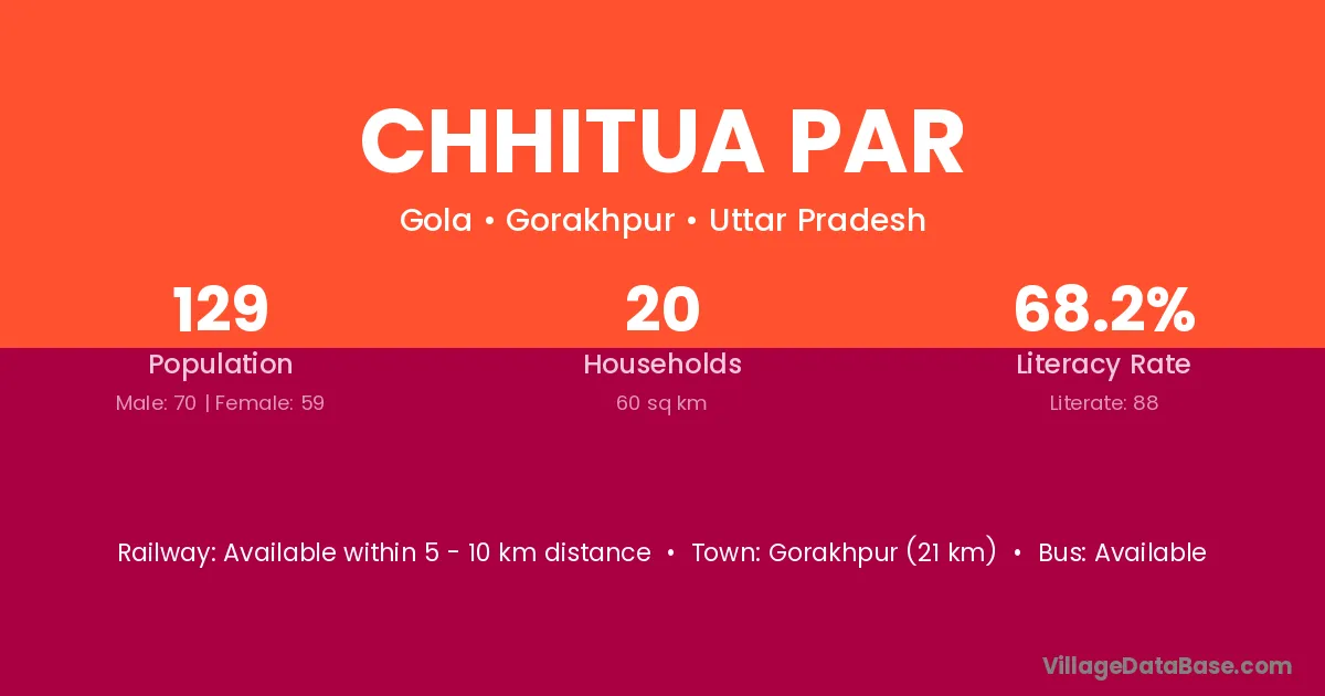 Gorakhpur (21 km) is the nearest town to Chhitua Par village for major economic activities and is located approximately 21 km away.