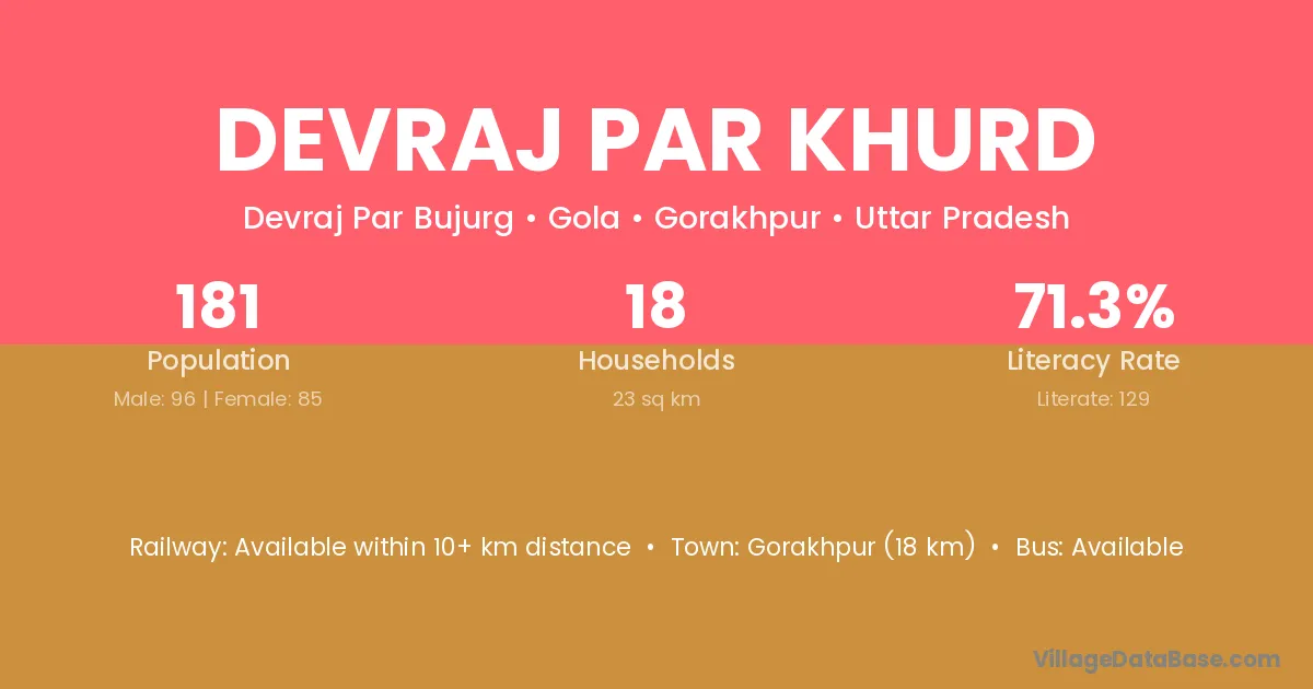 Gorakhpur (18 km) is the nearest town to Devraj Par Khurd village for major economic activities and is located approximately 18 km away.