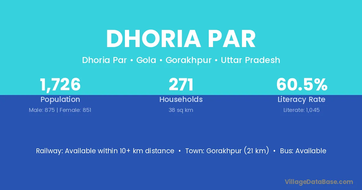 Gorakhpur (21 km) is the nearest town to Dhoria Par village for major economic activities and is located approximately 21 km away.
