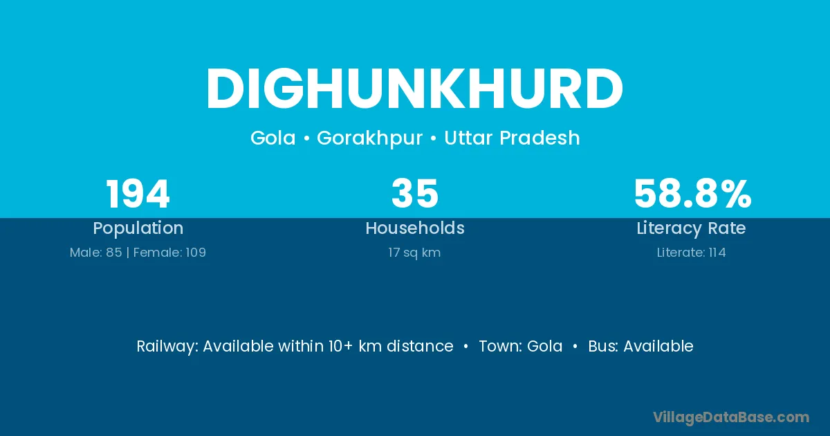 Dighunkhurd village has a total population of 194 people, of which 85 are males and 109 are females.