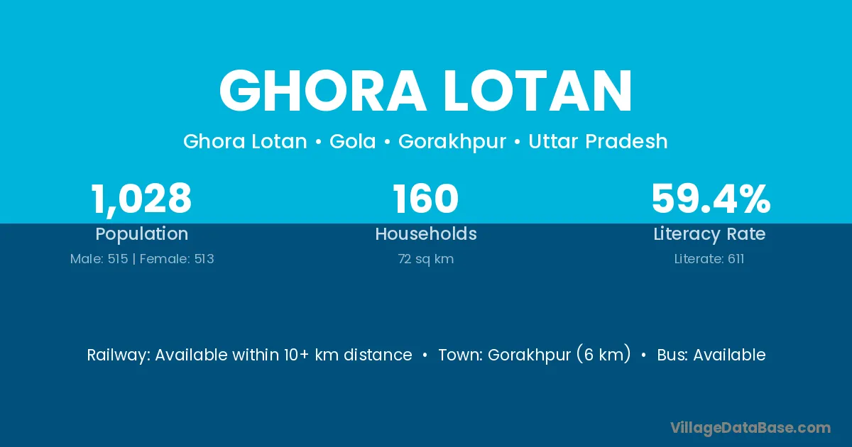 Gorakhpur (6 km) is the nearest town to Ghora Lotan village for major economic activities and is located approximately 6 km away.