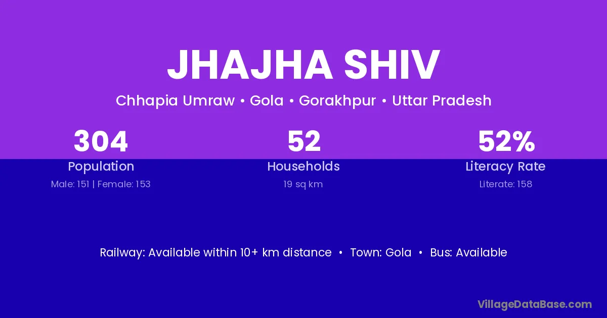 Jhajha Shiv village has a total population of 304 people, of which 151 are males and 153 are females.
