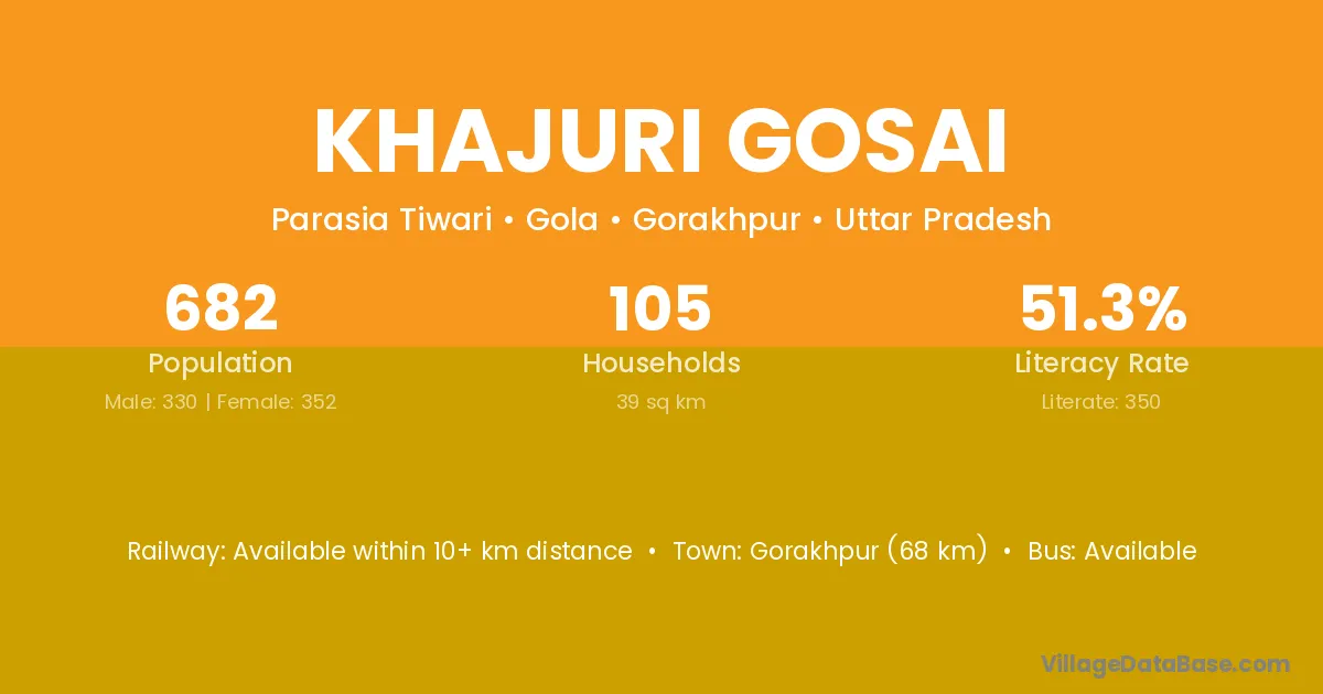 Gorakhpur (68 km) is the nearest town to Khajuri Gosai village for major economic activities and is located approximately 68 km away.