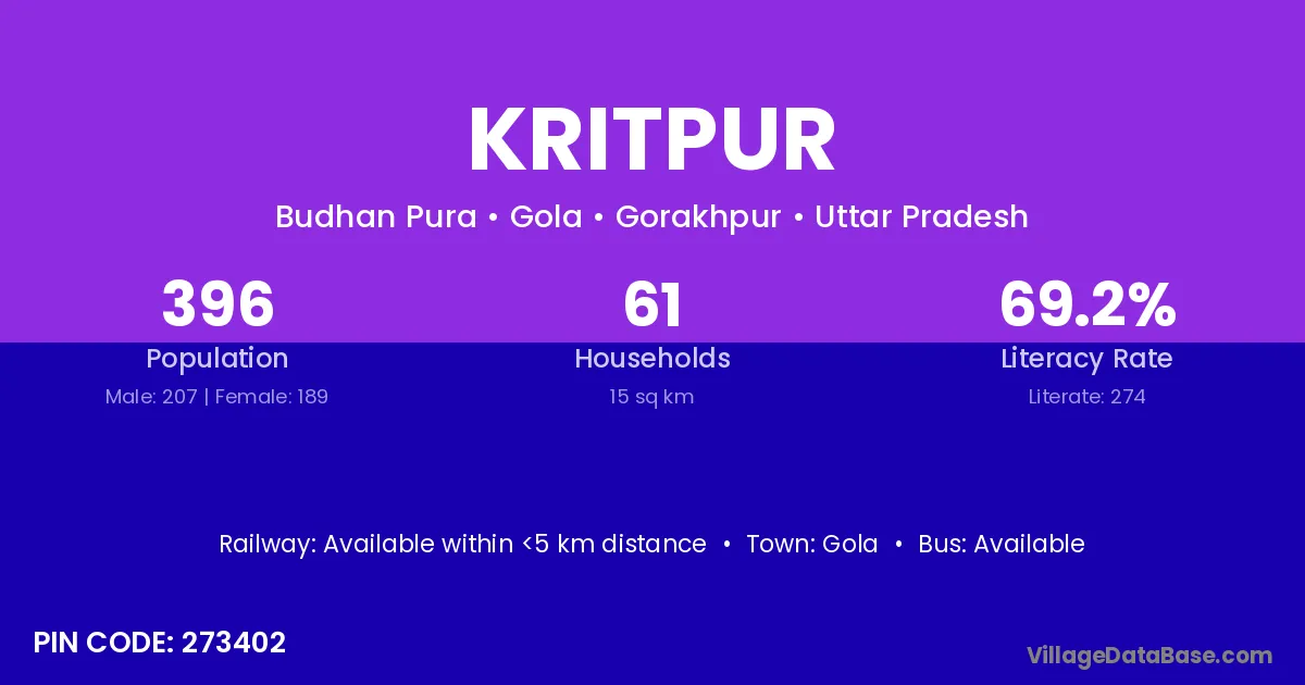 According to Census 2011 information, the village code of Kritpur village is 273402.