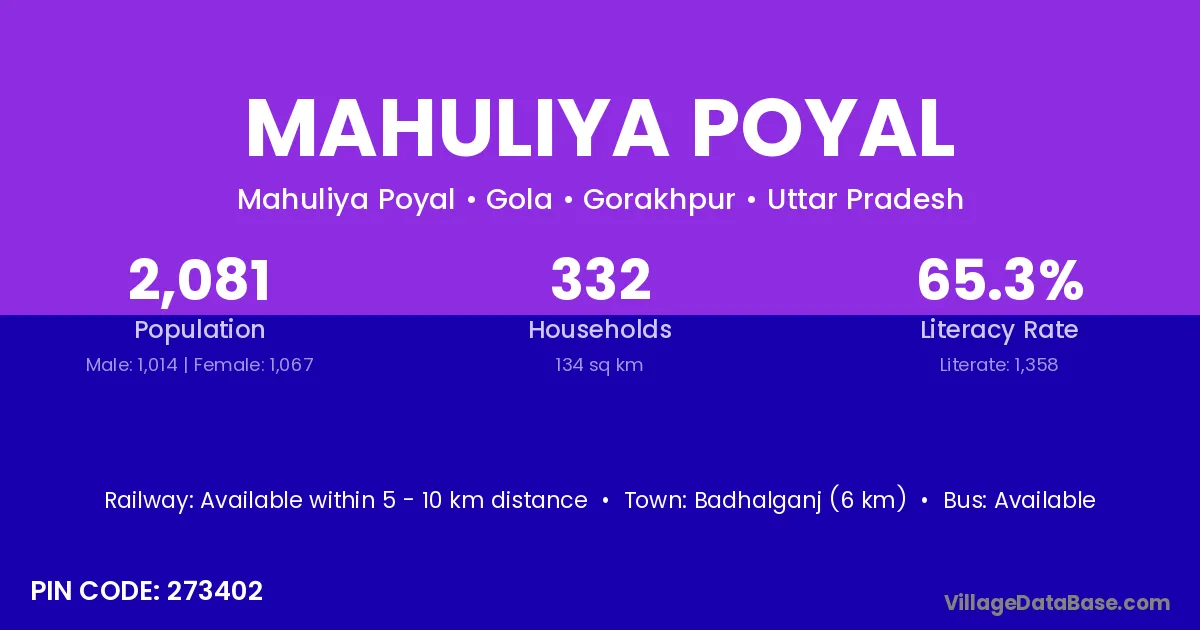 Badhalganj (6 km) is the nearest town to Mahuliya Poyal village for major economic activities and is located approximately 6 km away.
