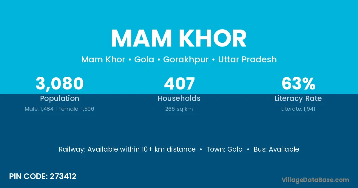 Mam Khor village has a total population of 3,080 people, of which 1,484 are males and 1,596 are females.