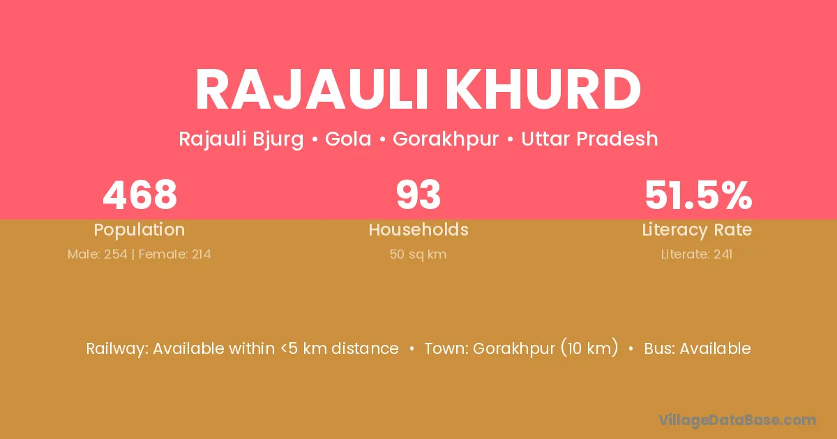 Gorakhpur (10 km) is the nearest town to Rajauli Khurd village for major economic activities and is located approximately 10 km away.