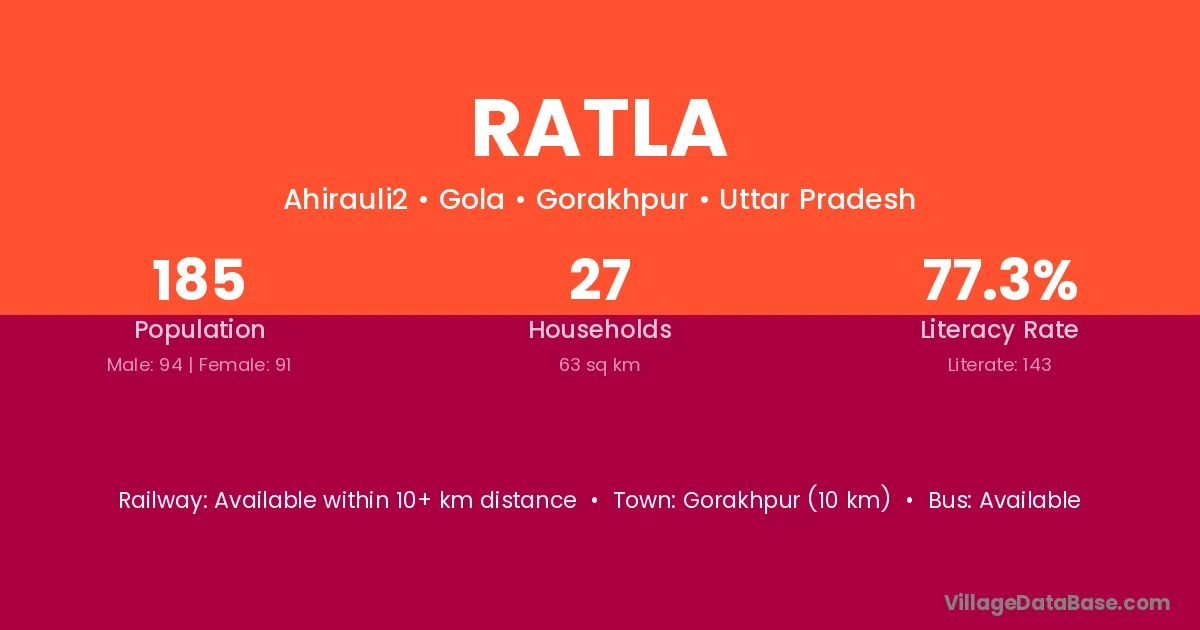 Gorakhpur (10 km) is the nearest town to Ratla village for major economic activities and is located approximately 10 km away.