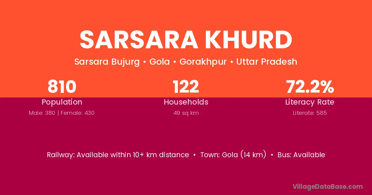 Gola (14 km) is the nearest town to Sarsara Khurd village for major economic activities and is located approximately 14 km away.