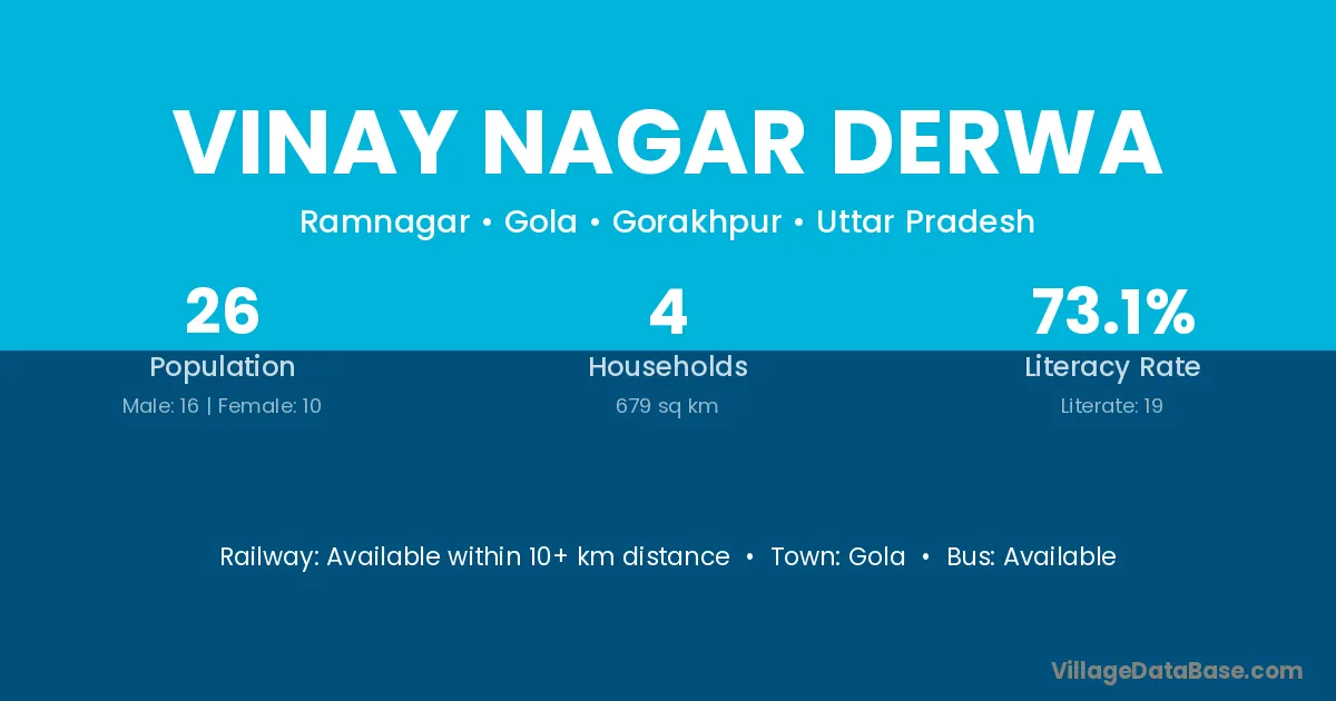 Vinay Nagar Derwa village has a total population of 26 people, of which 16 are males and 10 are females.