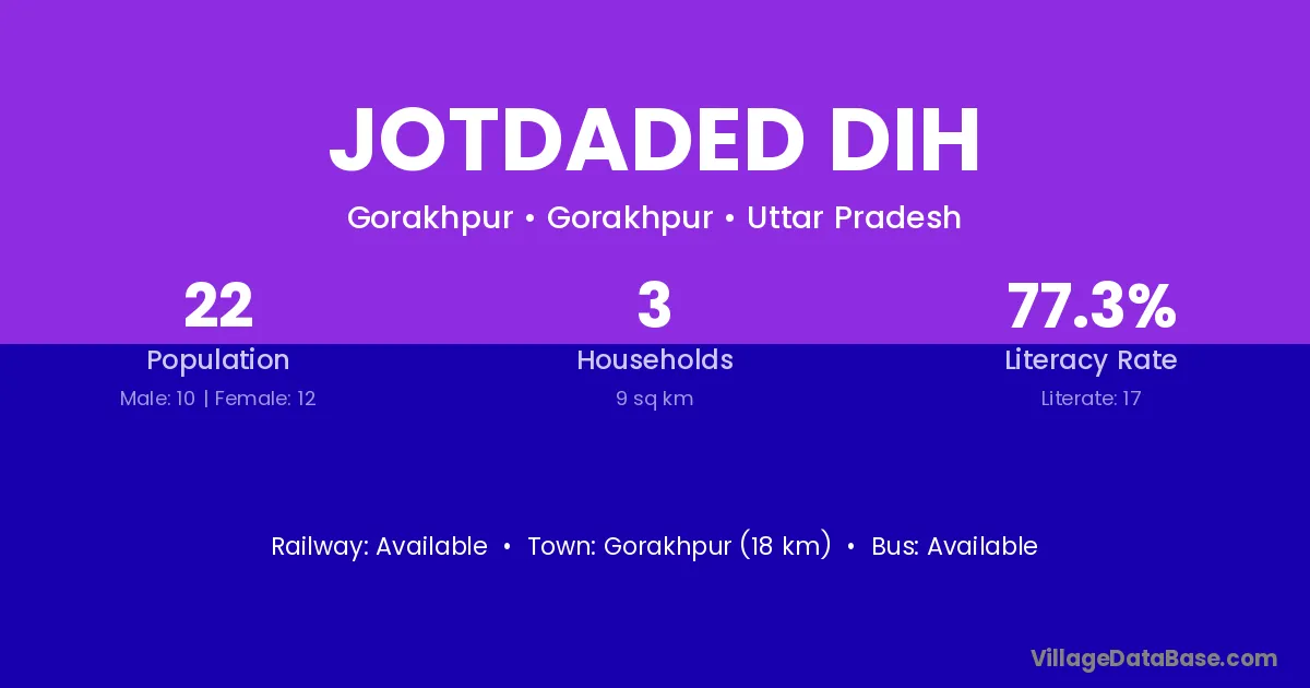 Gorakhpur (18 km) is the nearest town to Jotdaded Dih village for major economic activities and is located approximately 18 km away.