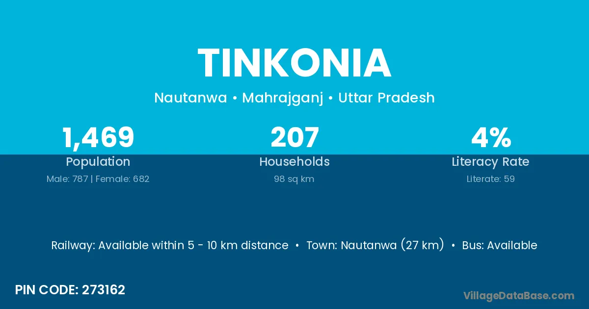 Gorakhpur (8 km) is the nearest town to Tinkonia village for major economic activities and is located approximately 8 km away.