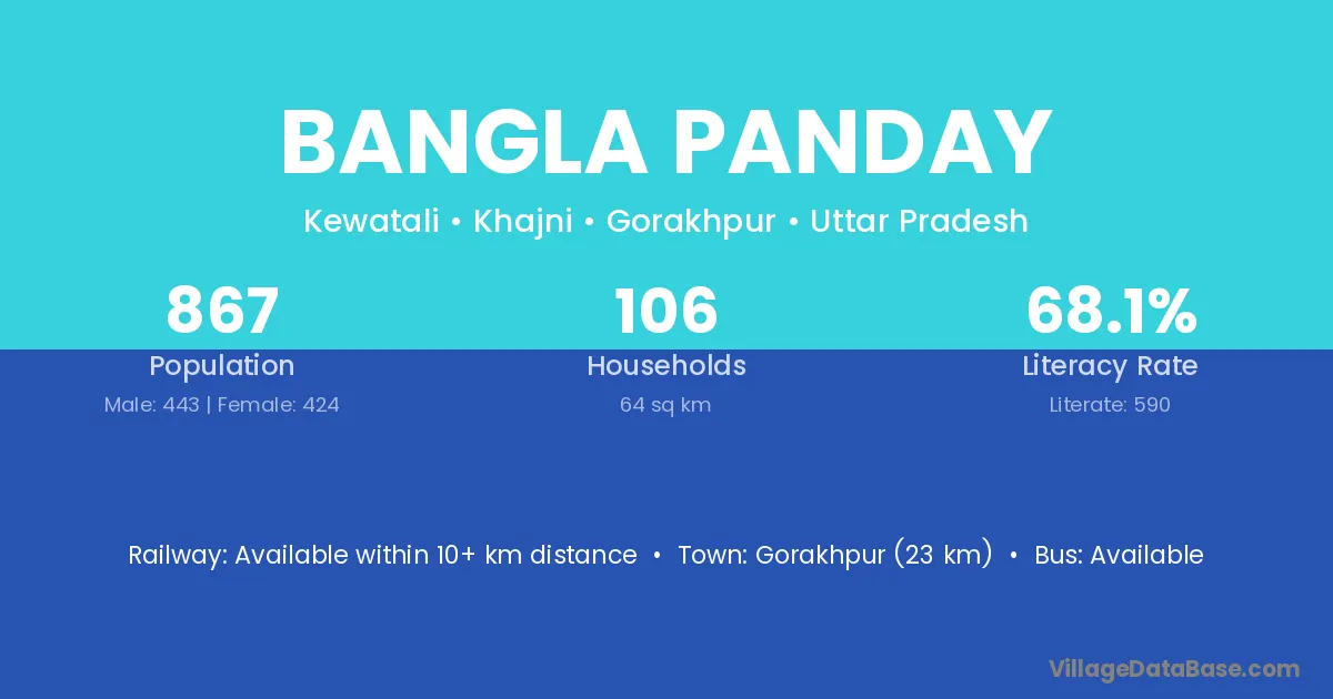 Gorakhpur (23 km) is the nearest town to Bangla Panday village for major economic activities and is located approximately 23 km away.