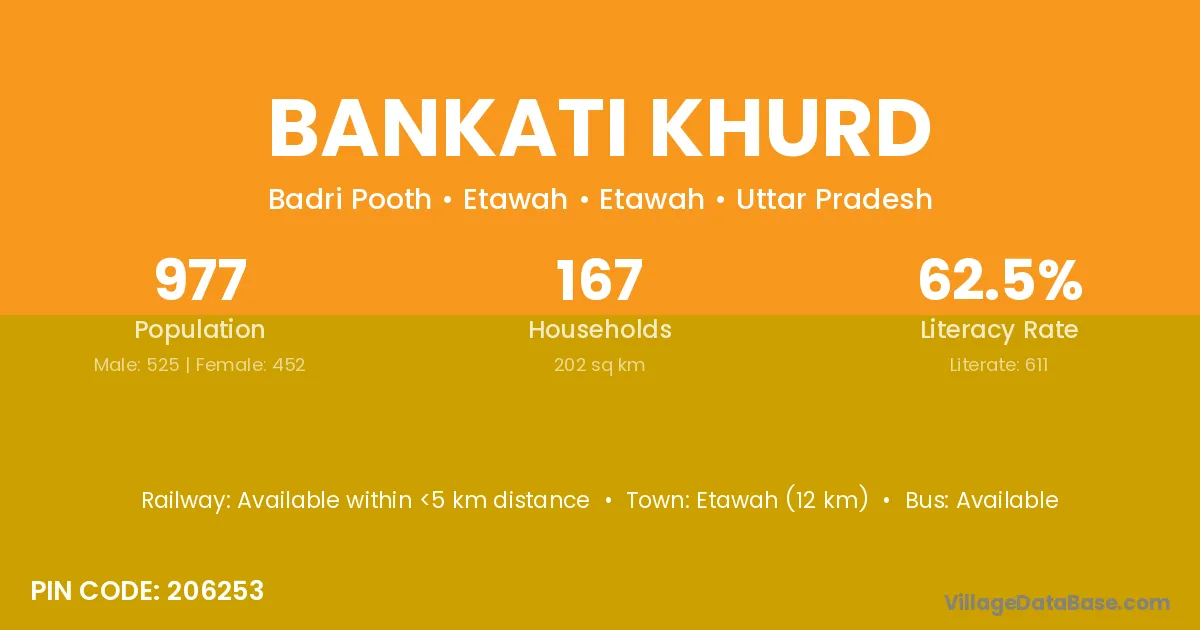 Bankati Khurd village has a total population of 458 people, of which 236 are males and 222 are females.