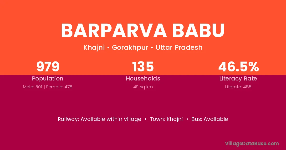 Barparva Babu village has a total population of 979 people, of which 501 are males and 478 are females.