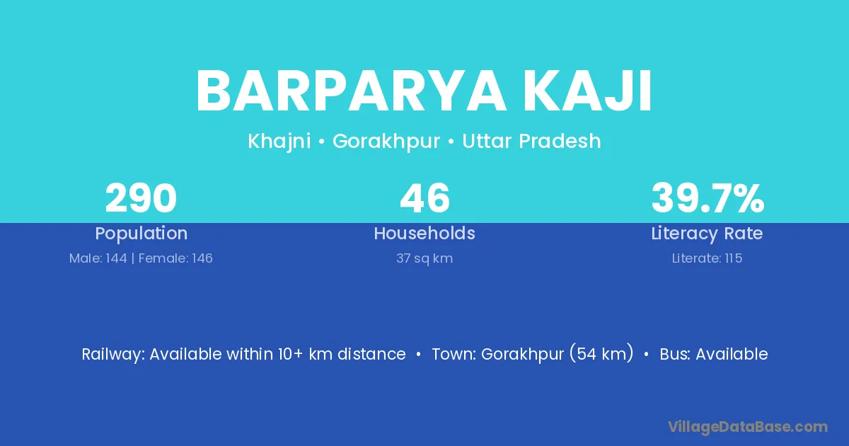 Barparya Kaji village has a total population of 290 people, of which 144 are males and 146 are females.