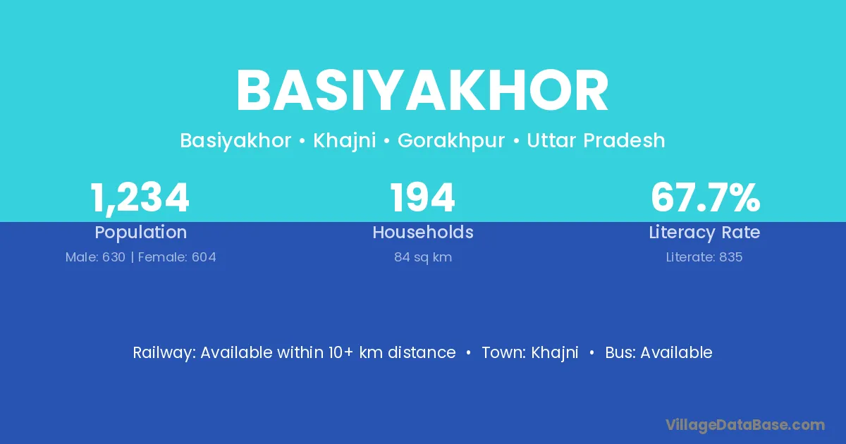 Basiyakhor village has a total population of 1,234 people, of which 630 are males and 604 are females.