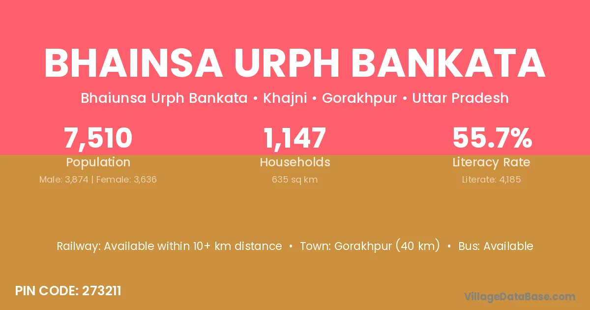 Gorakhpur (40 km) is the nearest town to Bhainsa Urph Bankata village for major economic activities and is located approximately 40 km away.