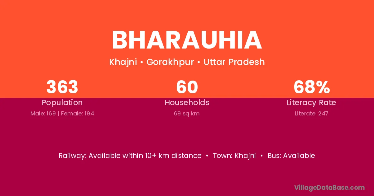 Bharauhia village has a total population of 363 people, of which 169 are males and 194 are females.