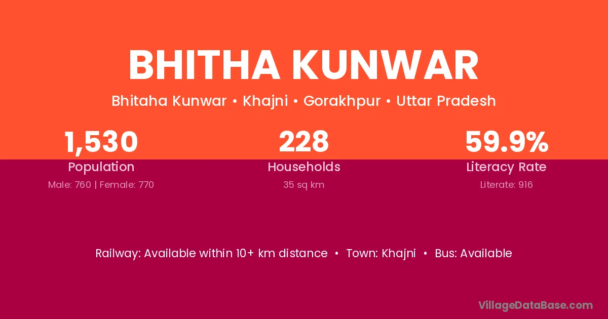 Bhitha Kunwar village has a total population of 1,530 people, of which 760 are males and 770 are females.