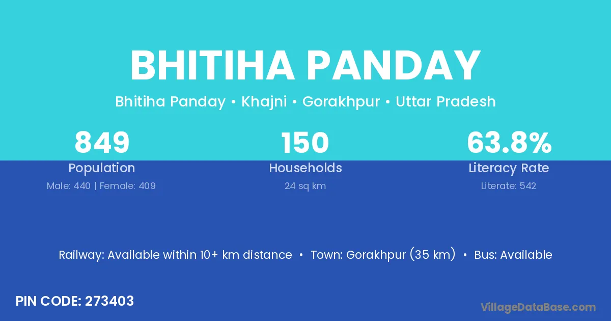 Bhitiha Panday village has a total population of 849 people, of which 440 are males and 409 are females.