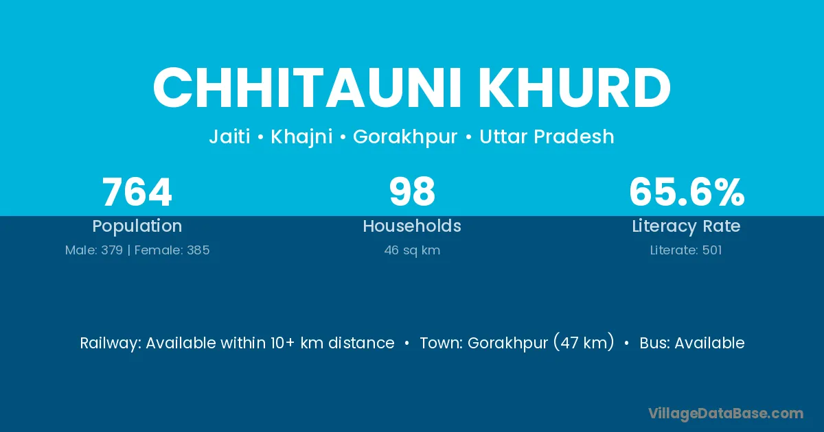 Gorakhpur (47 km) is the nearest town to Chhitauni Khurd village for major economic activities and is located approximately 47 km away.