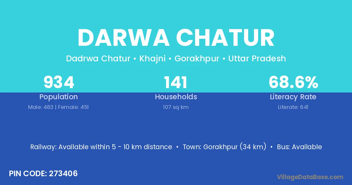 Gorakhpur (34 km) is the nearest town to Darwa Chatur village for major economic activities and is located approximately 34 km away.