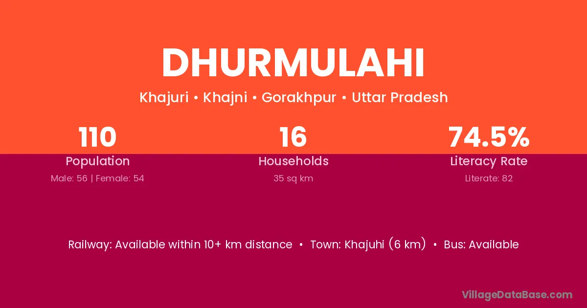 Dhurmulahi village has a total population of 110 people, of which 56 are males and 54 are females.