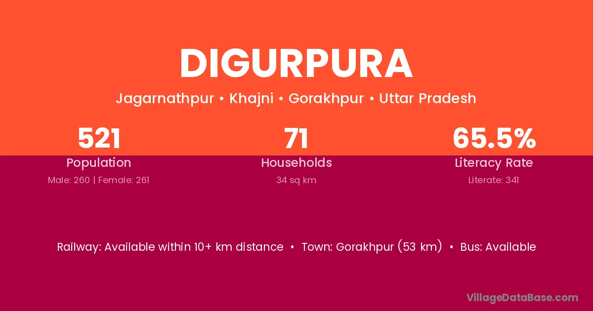 Gorakhpur (53 km) is the nearest town to Digurpura village for major economic activities and is located approximately 53 km away.