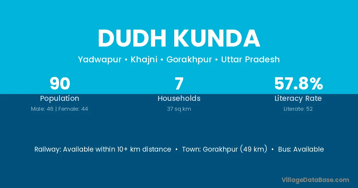 Gorakhpur (49 km) is the nearest town to Dudh Kunda village for major economic activities and is located approximately 49 km away.