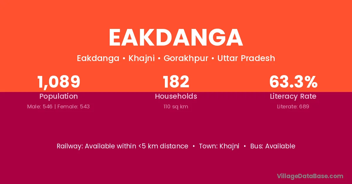 Eakdanga village has a total population of 1,089 people, of which 546 are males and 543 are females.